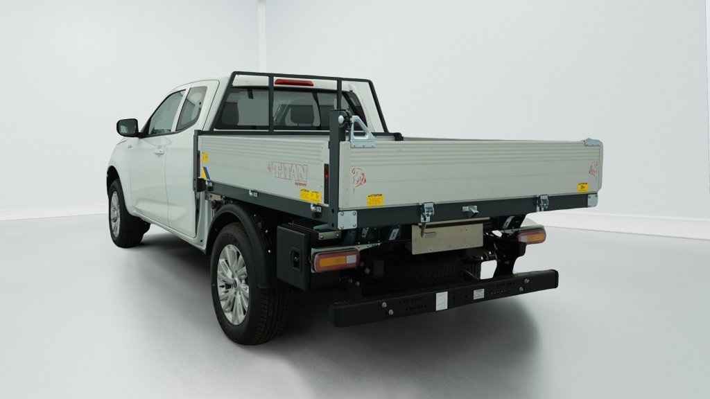 Benne arriere en acier : structure du plancher de chargement en acier tole unique ep. 3 mm faux-chassis en acier face avant en aluminium de 300 mm avec porte echelle en acier peint ridelles laterales de 300 mm en aluminium anodise avec poignees d'ouv